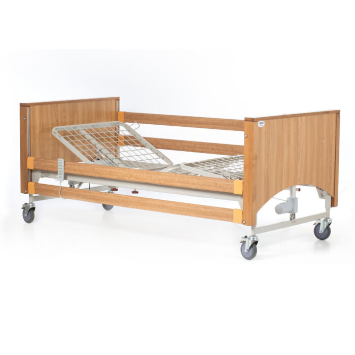The Alerta Lomond Standard Bed provides the perfect balance between budget, functionality and quality, and comes with the added benefit of Trendelenburg and reverse Trendelenburg tilting feature. The bed has a 3 year warranty on the bed frame and 2 years on the motors and electrics. It can be dismantled for storage or transporting and is available in Oak and Walnut wood finish.
