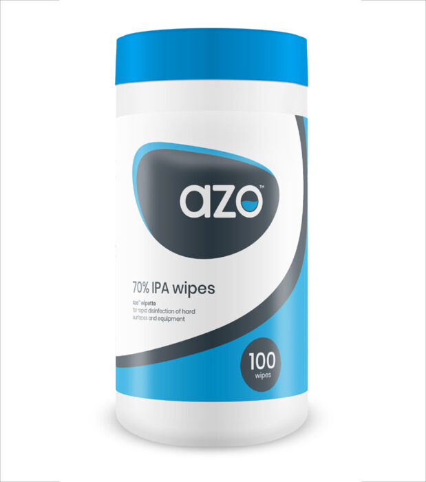 Our Azowipe® range contains 70% isopropanol which has been proven to provide efficient and rapid disinfection of hard surfaces and non-invasive medical devices which leaves surfaces thoroughly disinfected, with no residue.