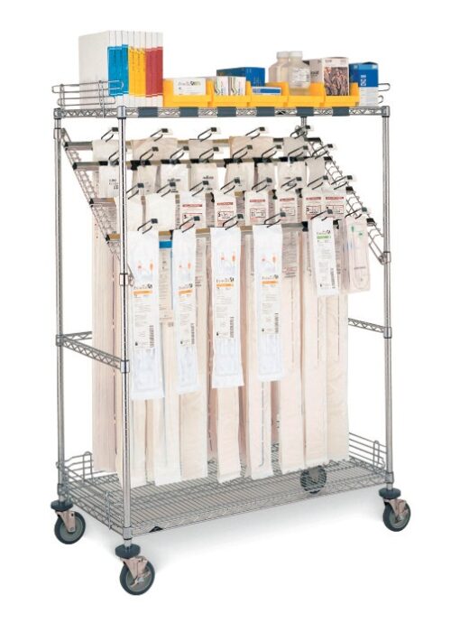 - Holds all styles and sizes of catheter packages — on hooks, shelves, in tote boxes or bins
