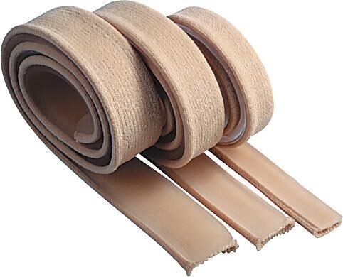 Elasticated tube with a cushioning strip of polymer gel on the inside