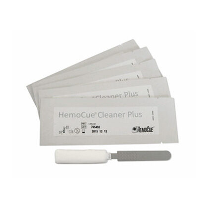 139130The HemoCue® Cleaner Plus is useful for cleaning the optronic unit of the HemoCue® WBC DIFF Analyzer and HemoCue® WBC Analyzer. It is made of a lint and fiber free material that is highly absorbent and moistened with a cleaning solution. It will therefore effectively clean the optical lens by absorbing the blood without smearing it. Comes in a packet of 5
