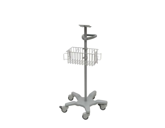 Huntleigh GCX roll stand with integrated storage basket and five castors. Suitable for Huntleigh monitors: SC300, SC1000 and SC750.