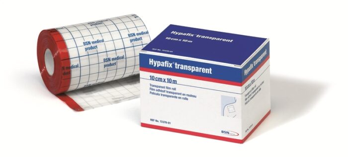 Available on a roll, Hypafix Transparent protects dressings from contamination whilst allowing the skin to breathe. Patients can bathe or swim with Hypafix Transparent securely covering their wound dressings.