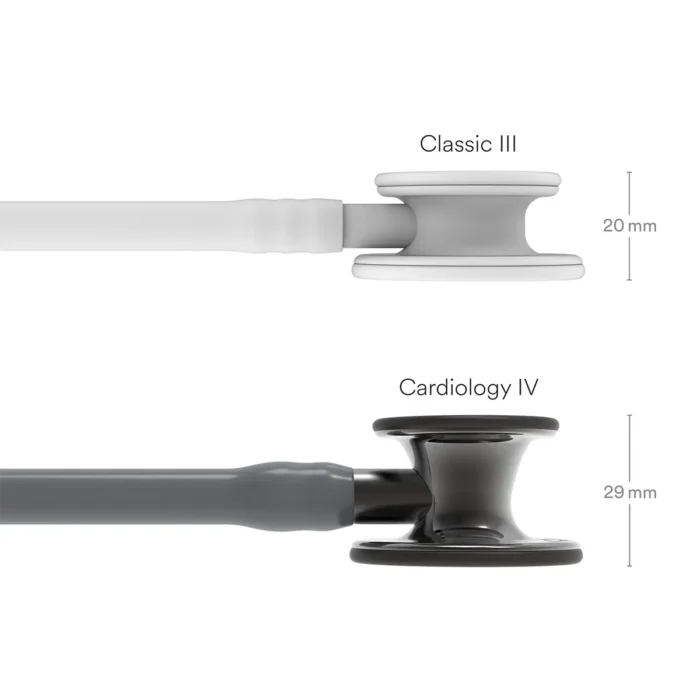 The 3M™ Littmann® Cardiology IV™ Stethoscope is the next generation of one of the most recognised stethoscopes in the profession, offering improved acoustic performance with better audibility of high-frequency sounds (adult side, firm pressure). Its distinctive chalice-shaped chestpiece features tunable diaphragms on both sides to deliver outstanding acoustic performance, diagnostic versatility, and convenience for treating adult and paediatric patients. The paediatric side of the chestpiece converts to a traditional open bell by removing the tunable diaphragm and replacing it with the included non-chill bell sleeve.