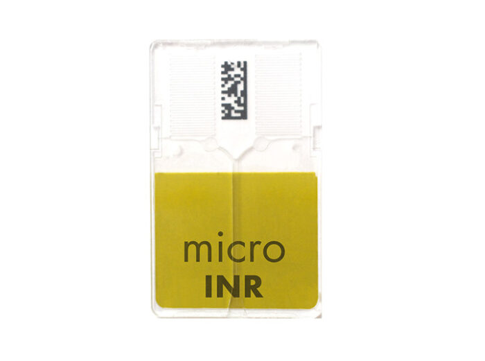 The microINR Chip is a disposable plastic test strip, that encloses two microcapillary channels, of extremely simple construction and fully passive (i.e. no builtin sensors, nor electrodes, nor external pumping).