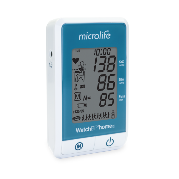 The Microlife WatchBP Home S is designed for blood pressure monitoring with atrial fibrillation (AF) detection technology for risk of stroke.