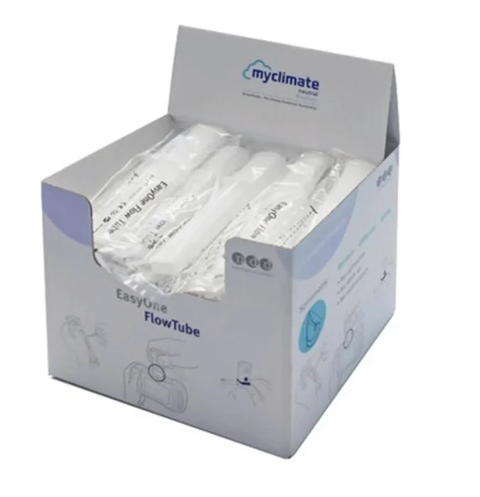 The ndd EasyOne Flow Tubes are single-patient-use mouthpieces designed exclusively for the ndd EasyOne Air Spirometer. These disposable flow tubes ensure accurate spirometry measurements while minimizing the risk of cross-contamination between patients. Each box contains 50 individually wrapped flow tubes, making them ideal for both clinical and home healthcare settings. (Only works with ndd EasyOne Air Spriometer)