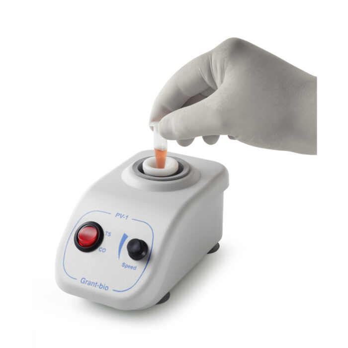 Ideally sized for personal use, the Grant-bio PV-1 vortex mixer is compact, with a low profile and small footprint, to sit in almost any location. The PV-1 is so small that it will fit in your hand – yet there is no compromise on performance. The reliable motor produces regulated and reproducible agitation throughout the speed range. It is also extremely quiet.