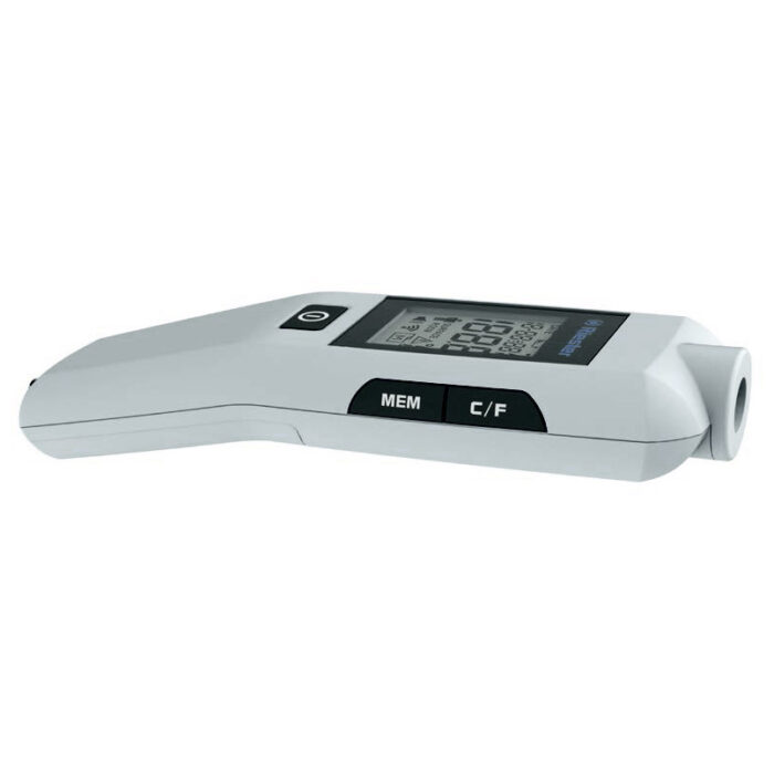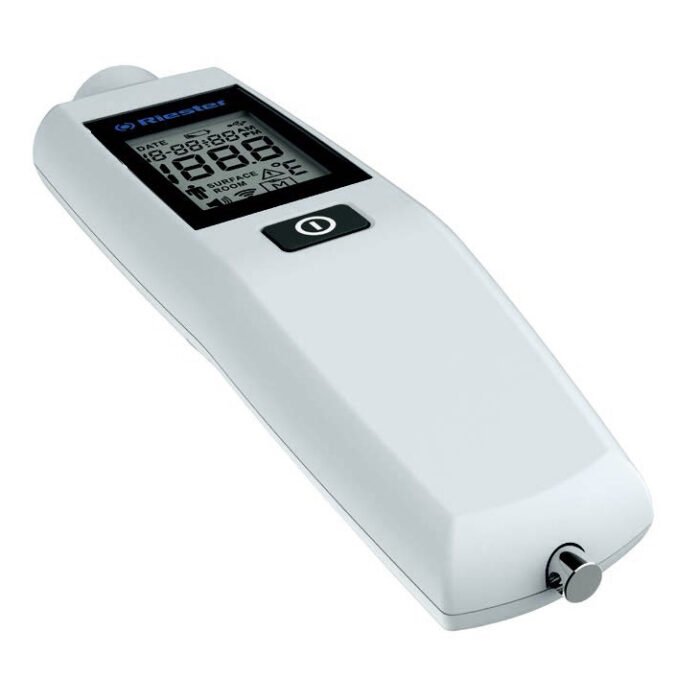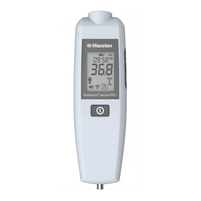 The Riester ri-thermo® sensioPRO+ non-contact, infrared thermometer, when speed and minimising cross contamination has never been so critical. It features clinical grade temperature measurements, with a single button operation. Reading forehead temperature measurements calibrated to an oral reference. Optimized for the professional. Measure the difference!
