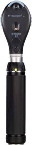 - Practical storage container for two replacement lamps and ear specula