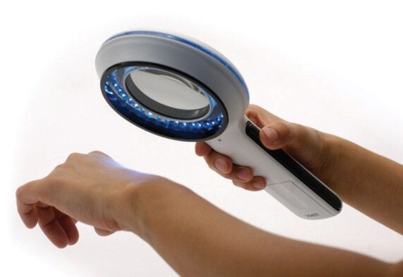 Lumio is the ideal device for general skin examinations where an in-depth, glare-free image of the skin is essential. With its 75 mm lens offering a magnification of 2x, the power of 40 bright-white LEDs (light emitting diodes), and cross-polarisation, Lumio is a great tool for a variety of dermatological exams: Varicose veins, pigmented skin lesions, hair follicles and much more.