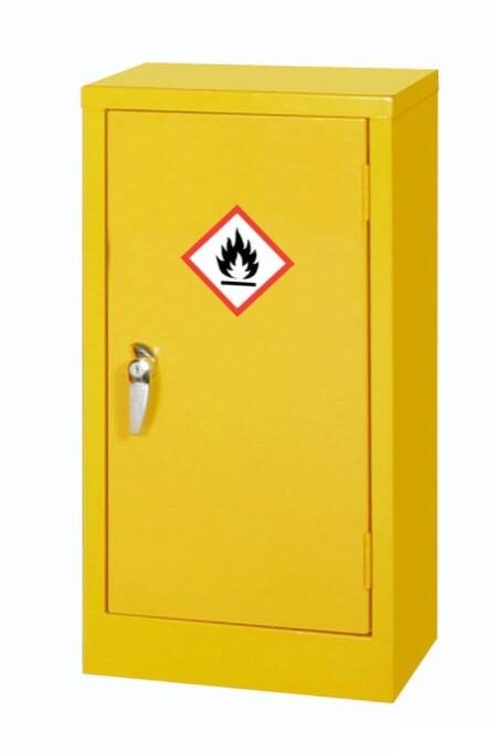 These cabinets keep potentially dangerous materials safely contained. Their bright yellow exterior indicates danger and provides a warning to those in the vicinity.