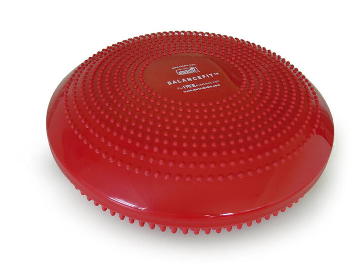 Air filled balance disc with spikes. The Redlue Sissel Balancefit is a multifunctional training device to improve balance, physical co-ordination, strength and circulation. It features specially shaped knobbles in two thicknesses, increasing the body's perceptive ability. It is also ideal for foot massage, working on pelvic floor exercises or as a dynamic sitting aid.