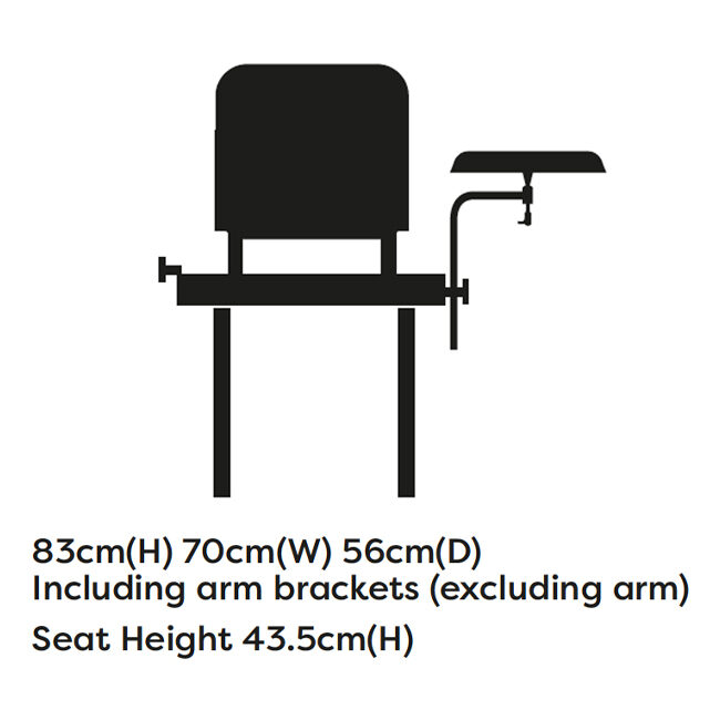 Dimensions: 83cm(H) 70cm(W) 56cm(D), Including arm brackets (excluding arm), Seat Height 43.5cm(H)