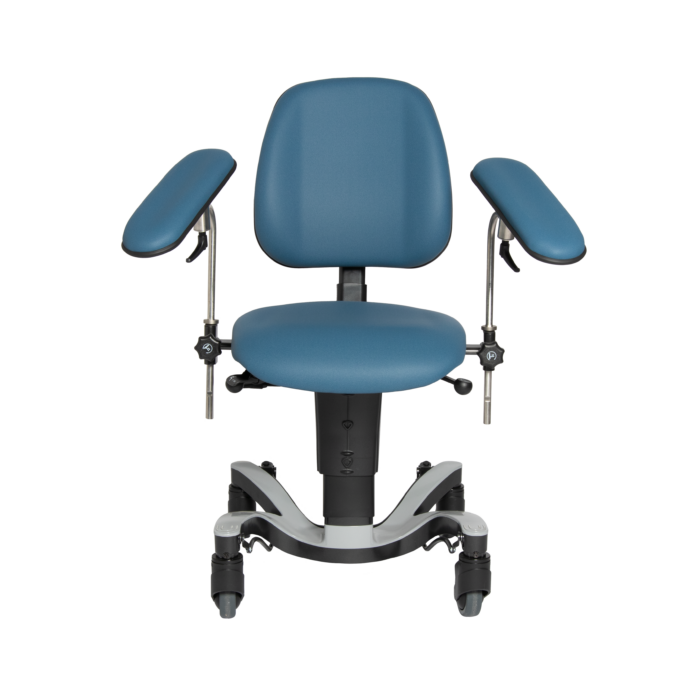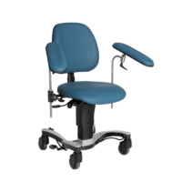 A manually adjustable sampling chair with robust multi-adjustable armrests provides optimal conditions for quick and precise sampling in a high and diverse patient flow. Suitable for the needs of both larger hospitals and general medical practice.