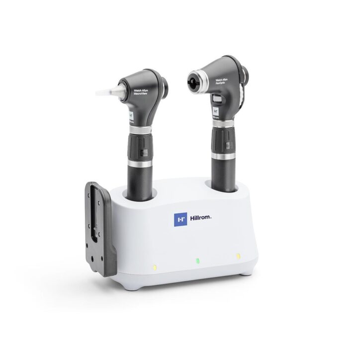 Welch Allyn 3.5V Diagnostic Set with PanOptic Plus LED Ophthalmoscope, MacroView Plus LED Otoscope for iExaminer, Universal Desk Charger, and two Premium Lithium Ion Plus USB Rechargeable Power Handles. Part # 71-PM3LDE