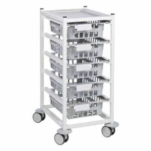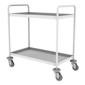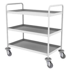 Dressing trolleys typically consist of multiple shelves or compartments that can hold various items such as dressings, bandages, sterile instruments, gloves, disinfectants, and other necessary supplies. The shelves may be adjustable or removable to accommodate different-sized items and facilitate efficient organization.